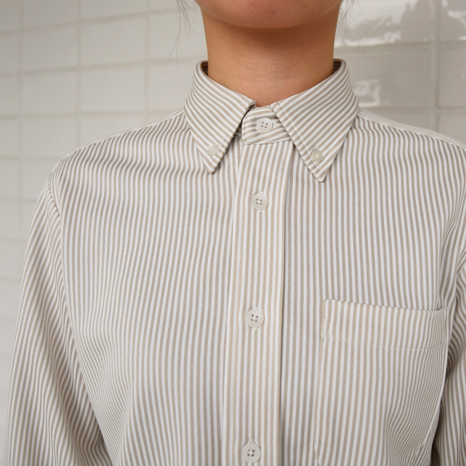 新ストライプ・シャツは軽やかで動きやすいジャージー素材を使用。
